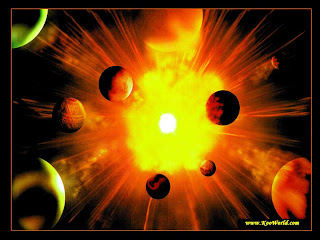 The Bhurloka stage of game begins 13.6 billion years ago with the creation of the solar system through a BIG BANG or explosion of the "hiranyagarbh" or "bindu". As it exploded, the space it encompassed started expanding and continues doing so even till today. As the gases started solidifying, masses of solidified celestial bodies started forming. These solidified celestial bodies have laws of thermodynamics and gravity wields a certain influence on each of the components of existence. The movement of these bodies in the solar system has an impact on the behaviour and reaction of other parts of this game (example : (1) The effect of the moon on the tides and the water element in human bodies and (2) the complete science and study of the impact of the solar system on a human being (Astrology). The cyclic movements of the solar system would impact humans and others beings in a cyclic manner.